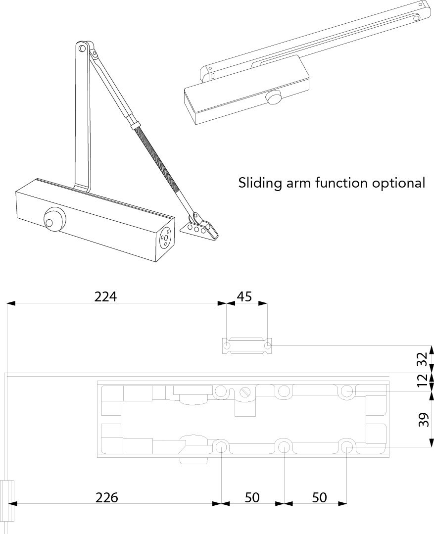 În pluslungime gaură pentru montare orizontală 100 mm, lungimea orificiului pentru montare verticală 39 mm