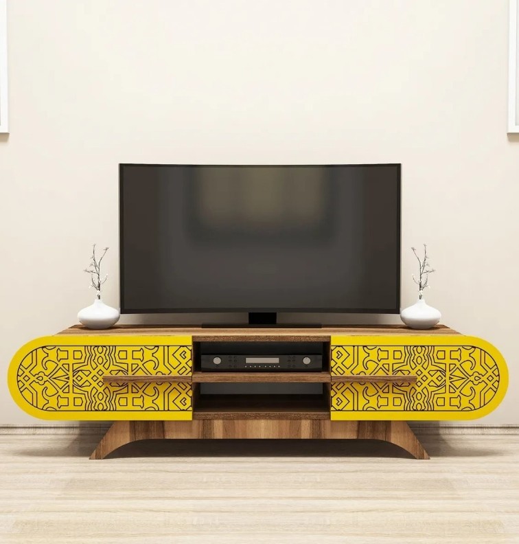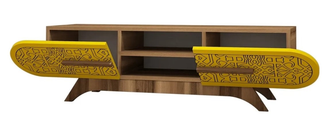 Comodă TV Trendy Defne Walnut/Yellow 145x37x35cm GTR000078