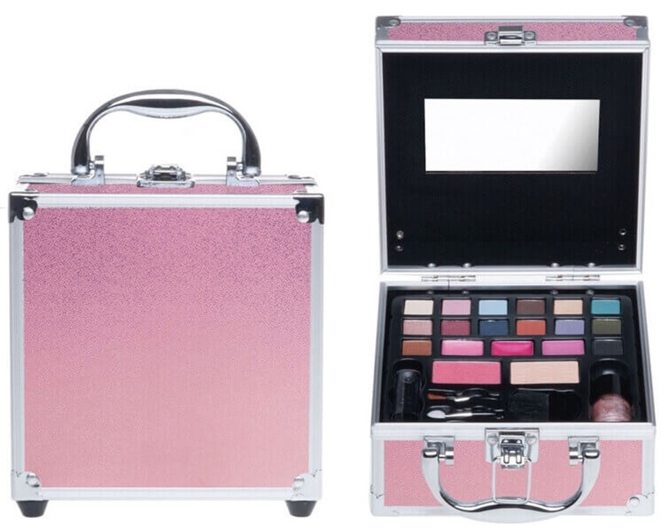 Setează compoziția1 oglindă, 14 farduri de pleoape, 3 farduri de buze strălucitoare, 1 fard de obraz, 1 pudră de față, 1 ruj, 1 lac de unghii, 1 aplicator, 2 perii cosmetice