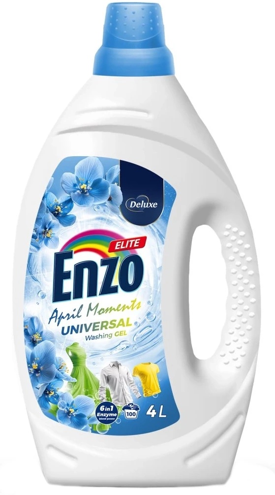 Gelul de rufe Enzo Deluxe Elite 6in1 April Moments este un detergent universal, creat pentru curățarea eficientă a hainelor și pentru menținerea prospețimii pe termen lung. Potrivit pentru toate tipurile de țesături, atât pentru mașina automată, cât și pentru spălare manuală. Gelul îndepărtează delicat murdăria, fără a deteriora fibrele și păstrând intensitatea culorilor.