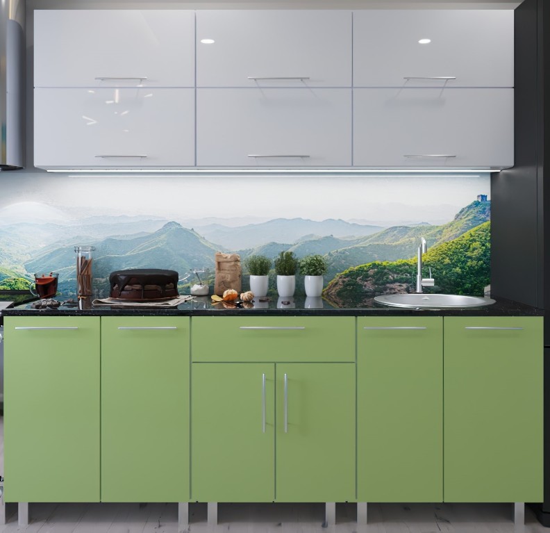 Bucătărie Bafimob Modern (High Gloss) 2.4m no glass White/Green