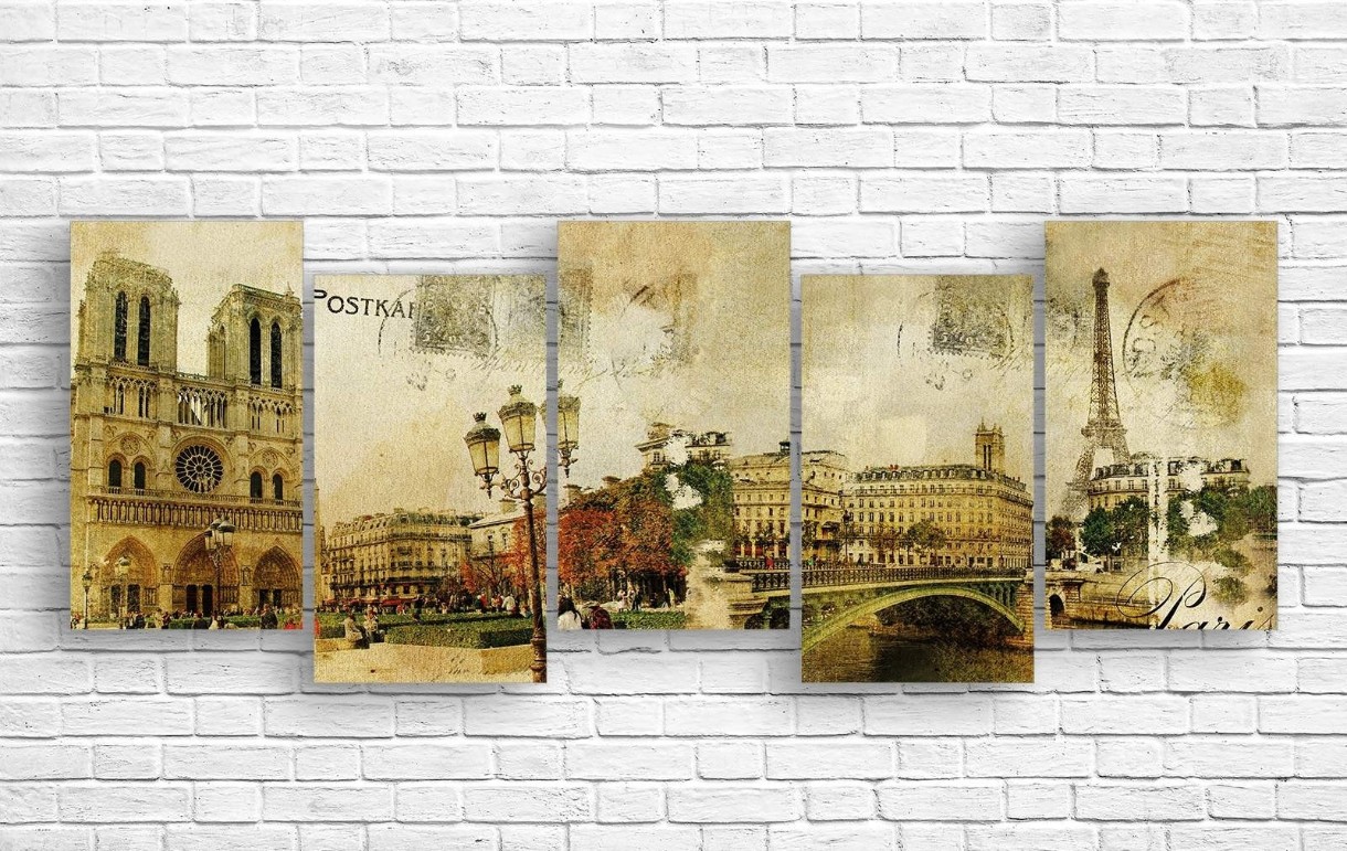 Pictură ArtDesign Old card of Paris 180x69cm (R-10095)