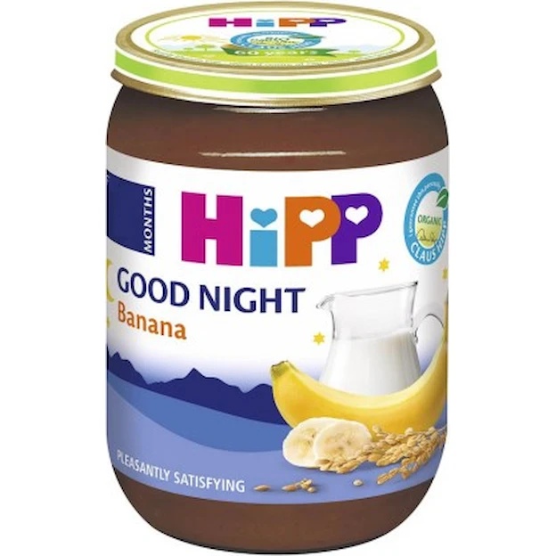 Meniu ideal ca masă completă de seară, înainte de culcare. Astfel, bebelusul ar putea să se trezească mai puțin pe timpul nopții să ceară biberonul cu lapte. Conține lapte hrănitor, piure de fructe și fulgi de cereale integrale (normalizează tranzitul).