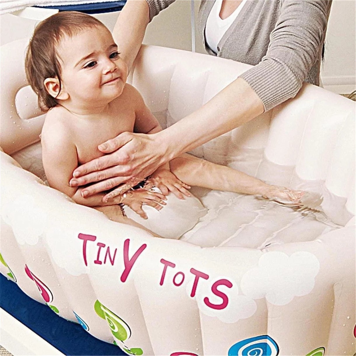 Fără cadă? Nicio problemă — cu această cadă gonflabilă poți să-ți faci baie bebelușului în siguranță acasă. Ideală ca baie de călătorie pentru micuțul tău. Dar această cadă este perfectă și pentru a se răcori în zilele fierbinți în grădină.