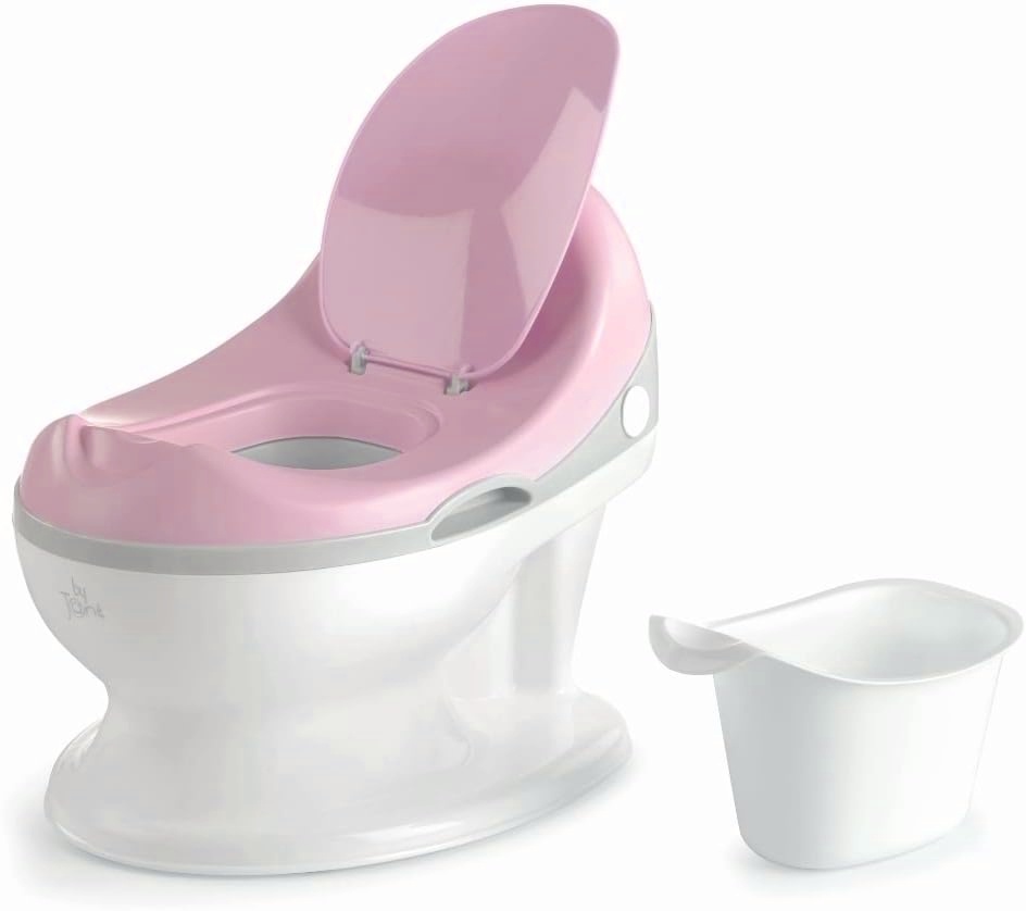 Design realist care facilitează trecerea de la scutece la baie și încurajează potențialul de independență al bebelușului. Încorporează o bară detașabilă pentru plasarea rolei de hârtie igienică și mânerele interioare de prindere.