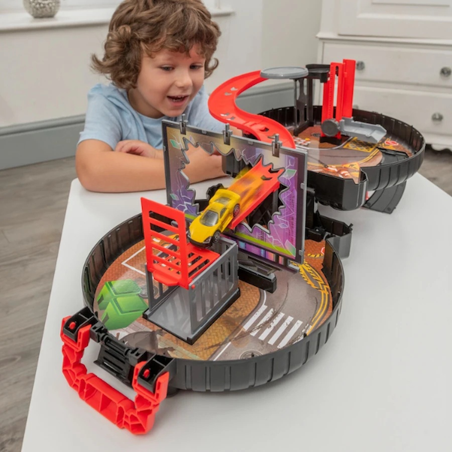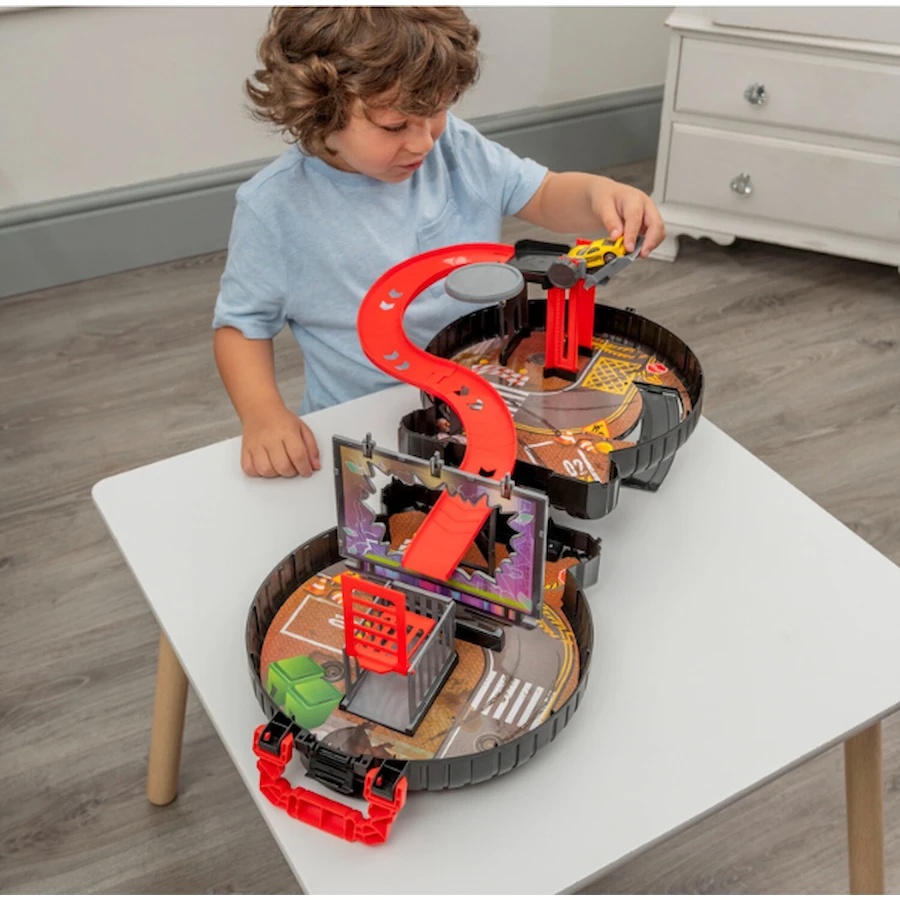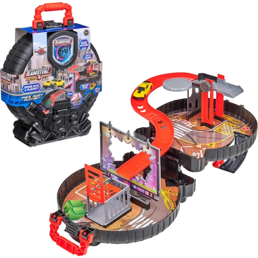 Teamsterz Metro City Packaway Wheel Playset este un set de joacă captivant, care se pliază într-o carcasă compactă în formă de roată! Cadoul perfect pentru micii pasionați de mașini, care stimulează imaginația, motricitatea fină și abilitățile cognitive.