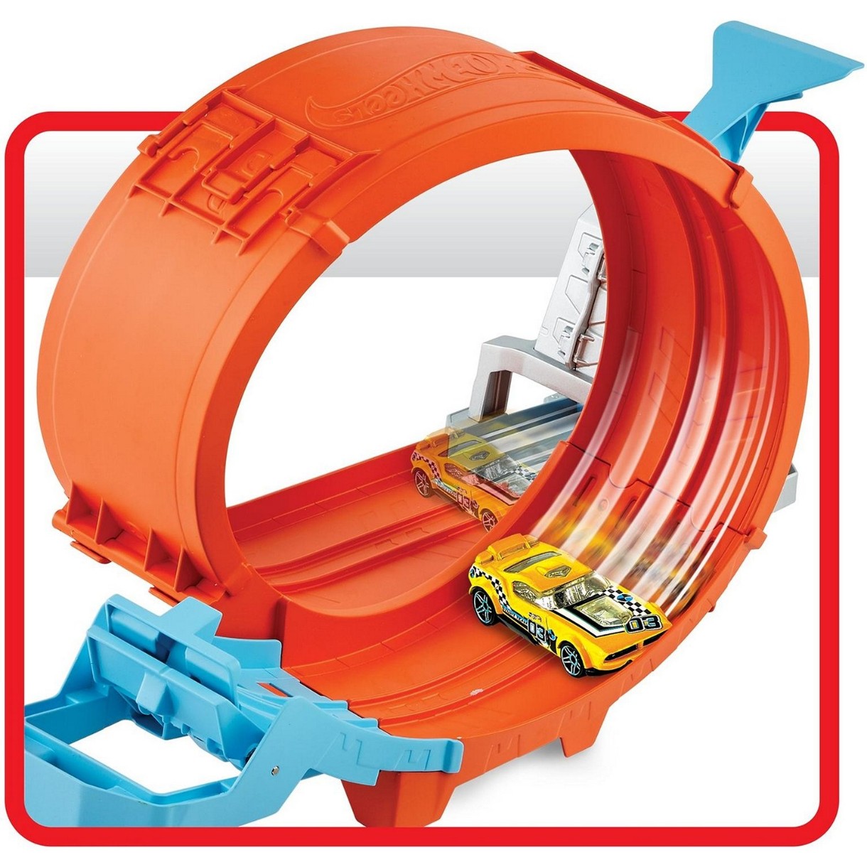 Poate fi jucat cu una sau mai multe mașini (mașini se vind separat). Lansatorul poate direcționa, de asemenea, mașinile orizontal în buclă, astfel încât să se răstoarne. Include o mașină Hot Wheels la scara 1:64, perfectă pentru copii cu vârsta cuprinsă între 4 și 6 ani.