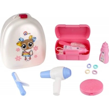 - Toate accesoriile mici se pot păstra convenabil într-o geantă cosmetică roz mare, pe care o puteți lua la grădiniță, la plimbare sau în vizite. Acum tot ce ai nevoie pentru păr și machiaj este la îndemână.