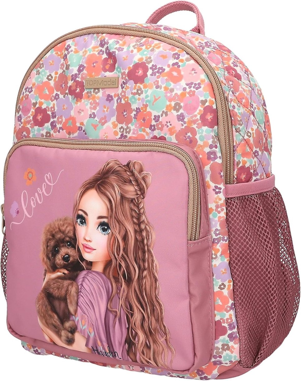 Design: TOPModel Floral de la Depesche - în culoarea fructelor de pădure, cu motiv de model și câine, model floral și matlasare cu romburi