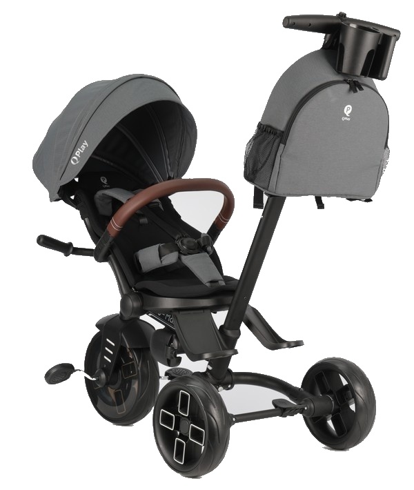 Bicicleta cu 3 roti cu maner de control QPlay. Roți EVA de 11 și 9 inci. Geanta din spatele cadrului. Suport pentru pahare. Mecanismul de pliere. Scaun pivotant la 180 de grade. Suporturi suplimentare pentru picioare pentru cei mici. Centura de siguranta in cinci puncte. Pernă moale pentru scaun. Acoperiș detașabil/pliabil pentru cărucior.