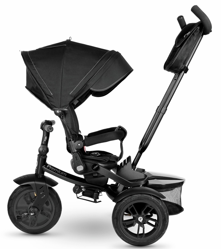 Q Play Premium 6-în-1 are un scaun pivotant și rabatabil cu funcții detașabile, permițându-i să fie adaptat de la bicicleta unui copil cu caracteristici de siguranță complete și confort pentru părinți la o tricicletă obișnuită.