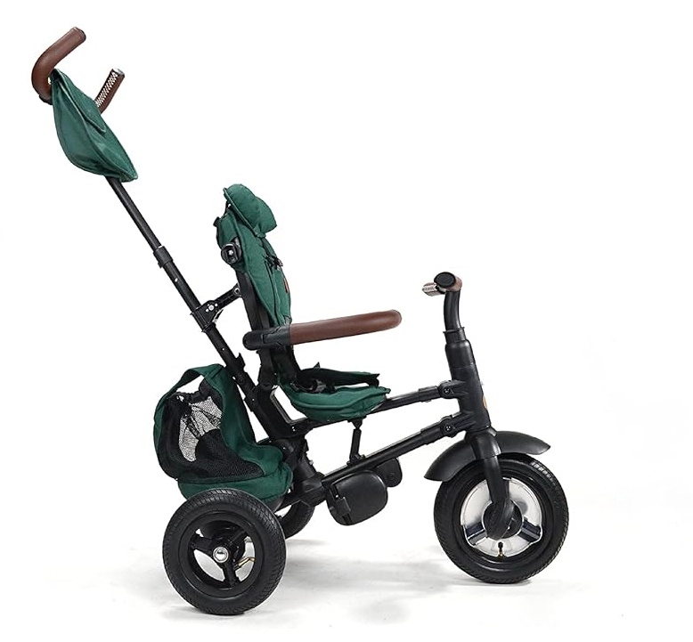 Spatarul tricicletei are doua pozitii de ajustare pe spate, este bine matlasat si echipat cu centura de siguranta in 5 puncte, ceea ce face tricicleta nu doar comoda ci si sigura. In plus, pentru siguranta, Qplay Rito Deluxe vine dotata cu frana dubla pe spate siguranta de pliere.