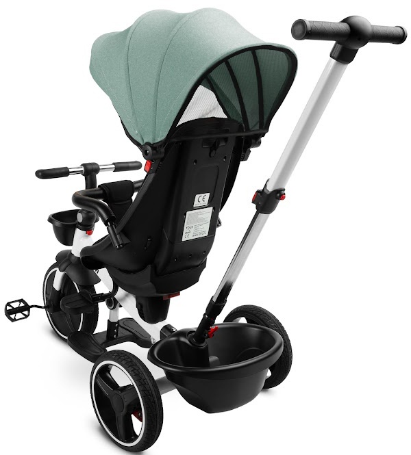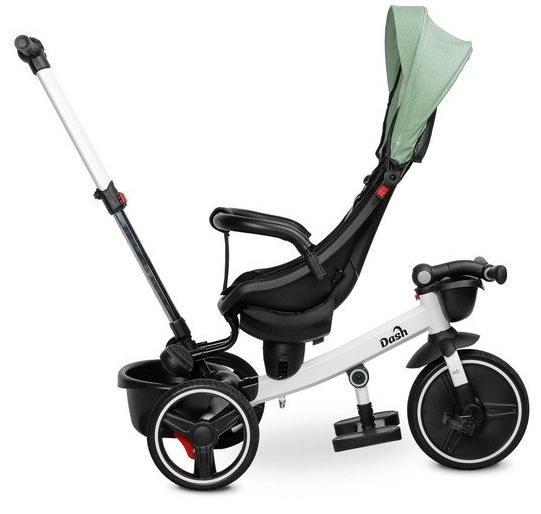Tricicleta Dash este o modalitate excelentă de a înlocui căruciorul de zi cu zi cu un mijloc de transport mai captivant pentru micuțul tău. Poate fi folosită ca bicicletă, permițându-i copilului tău să meargă independent, sau ca cărucior cu acoperiș, permițându-ți să-ți transporte copilul. Caracteristica unică a tricicletei Dash este scaunul său, care poate fi instalat fie cu fața spre direcția de mers, fie cu spatele spre direcția de mers. Bicicleta dispune de coșuri în față și în spate pentru depozitarea obiectelor mici. Bicicleta este echipată cu două suporturi pentru picioare: unul care se extinde din cadru și celălalt atașat la scaun, ceea ce îmbunătățește confortul la mers al copilului tău. Fiecare suport pentru picioare este reglabil pentru confortul copilului tău. Pentru siguranța copilului tău, tricicleta Dash este echipată cu o centură de siguranță în trei puncte, iar roțile din spate sunt dotate cu frâne, permițându-ți să parchezi bicicleta în siguranță, fără să-ți faci griji că se mișcă singură.