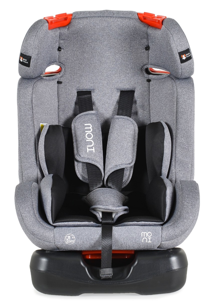 centura de siguranta in 5 puncte; șase poziții pentru tetiere: atunci când este utilizat pentru grupa 3, spătarul poate fi îndepărtat și poate fi folosit doar scaunul.
