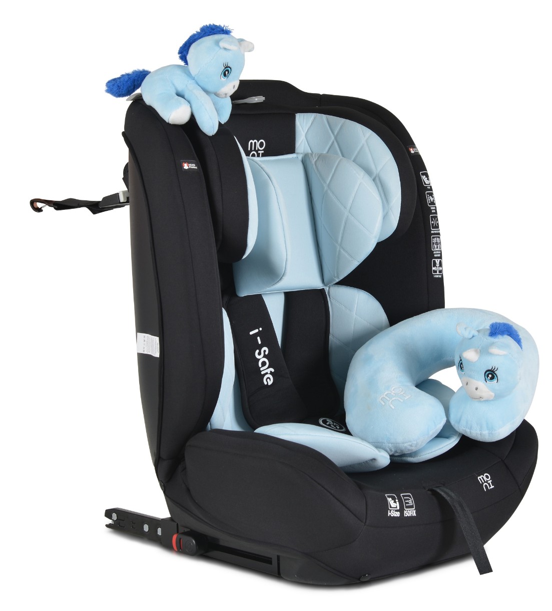 Scaunul auto I-safe este conceput pentru copiii cu o înălțime de 76-150 cm și o vârstă aproximativă de până la 12 ani (de la 9 la 36 kg). Oferă protecție și confort excelent copilului în timpul călătoriilor. Centura de siguranță în cinci puncte cu căptușeală moale și pernuțe de siguranță. Acest ham de siguranță complet reglabil vă menține copilul în siguranță în timpul călătoriei.