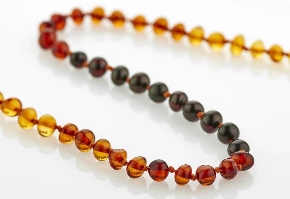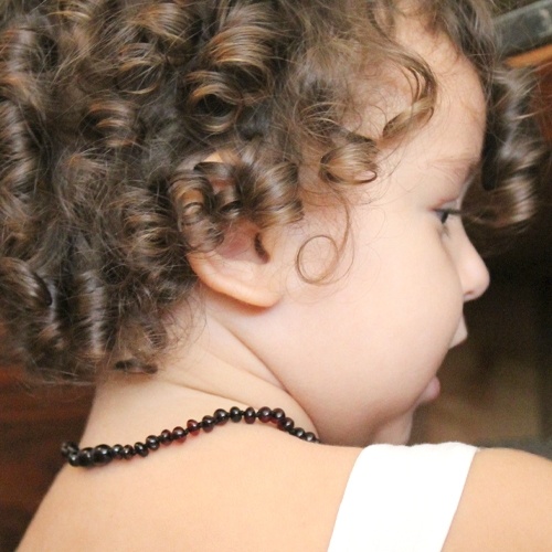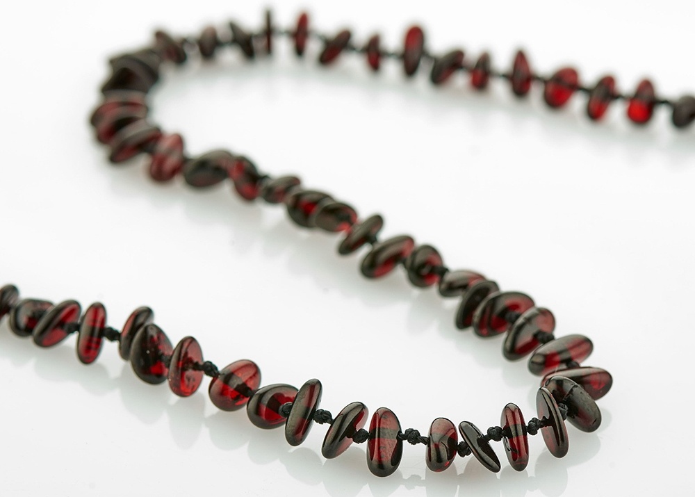 Boabele de chihlimbar insirate pe un snur dintr-un material ce nu provoaca alergii. Inchizatoarea este special creata impiedicand eventuale accidente.