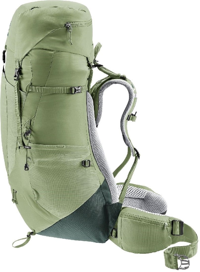 Acest rucsac de trekking ușor, destinat expedițiilor ambițioase pe distanțe lungi, este dotat cu sistemul VariQuick pentru ajustarea lungimii spatelui și aripioare lombare ECL, care asigură o potrivire fermă și confortabilă, precum și un transfer eficient al greutății. Sistemul de spate Aircontact Lite, realizat din spumă cu celule deschise și canal de ventilație, oferă o respirabilitate vizibilă și reduce presiunea asupra coloanei vertebrale. Rezultatul: un echilibru excelent între confort și greutate redusă, ideal pentru zile lungi pe traseu.