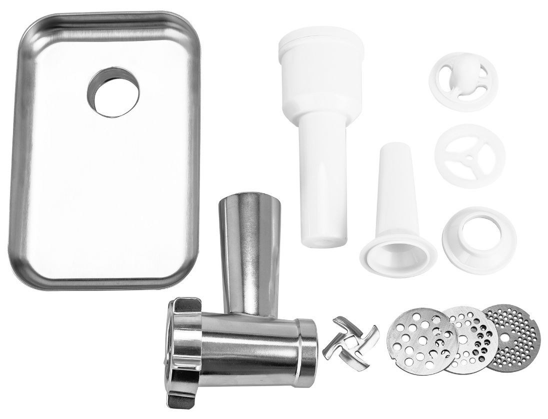 Un aparat 2 in 1 cu care veti economisi spatiu in bucatarie datorita functionalitatii lui. Acesta vine la dumneavoastra cu accesorii de framantare, tel si paleta de amestecare detasabile si con pentru prepararea celor mai gustosi carnati in propria bucatarie.