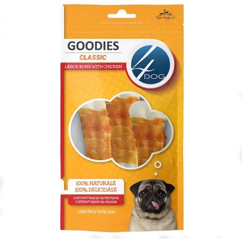 Snackuri pentru câini 4Dog Goodies Classic Large Bone With Chicken 100g
