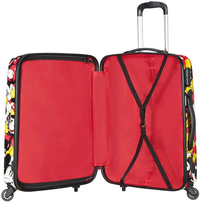 Această valiză mare Mickey Comics are o încuietoare combinată, astfel încât să vă puteți bloca bagajele și să călătoriți în liniște. De asemenea, are 4 roți super-manevrabile și un mâner reglabil în 3 poziții.