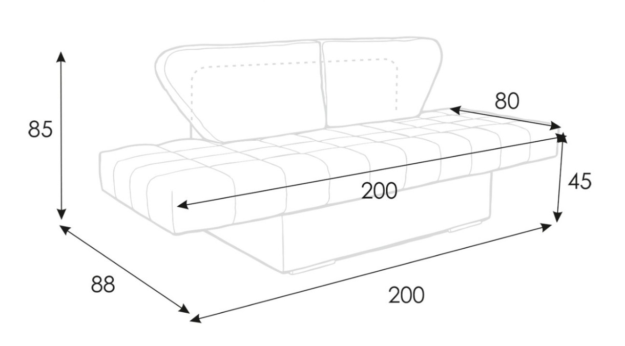 Dimensiunea patului extins (l×L×Î)200x88x85 cm