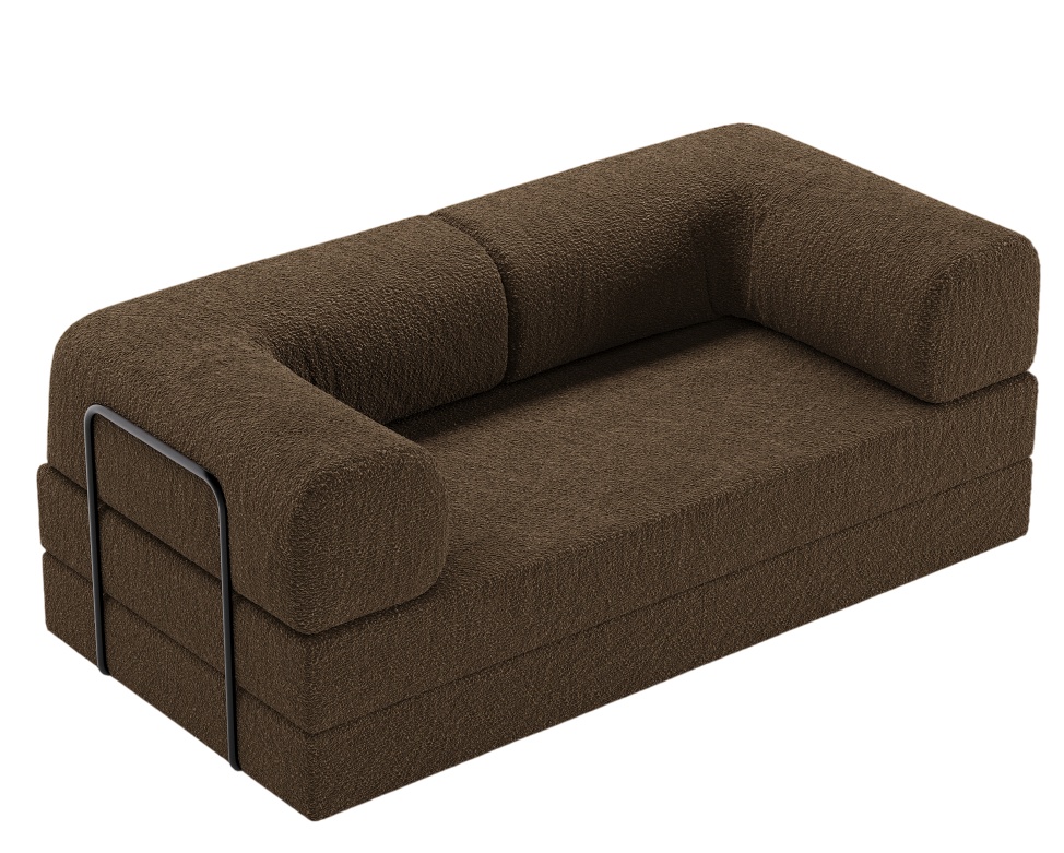 Această canapea extensibilă cu design compact este ideală pentru spații mici sau camere de oaspeți. Formele rotunjite și suporturile metalice laterale oferă un aspect modern și funcțional. Disponibilă în nuanțe calde .Perfectă pentru interioare urbane cu nevoi de multifuncționalitate.
