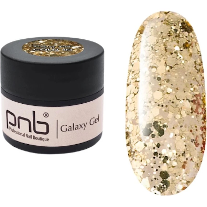 PNB Galaxy Gel — gel profesional cu efect „galaxie”, care permite crearea de designuri unice, cosmice și strălucitoare pe unghii. Se aplică ușor, se distribuie uniform și este ideal pentru decor tridimensional și manichiură artistică. Asigură luciu de durată și rezistență a acoperirii, nu crăpă și nu își pierde intensitatea culorii în timp.