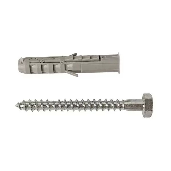 Diblul din polipropilenă, însoțit de un șurub cu cap hexagonal, este destinat fixării diverselor elemente pe baze de beton, cărămidă, gips-carton și lemn. Capul hexagonal al șurubului permite o prindere ușoară cu instrumente precum cheia fixă sau tubulară, facilitând astfel montajul rapid și eficient.