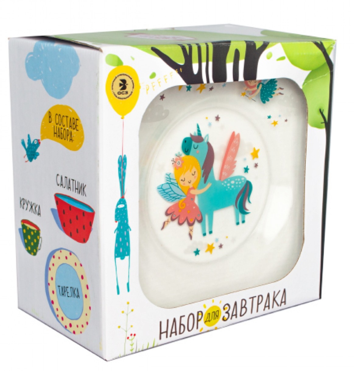 Setul de veselă pentru copii OSZ “PRINCESS" constă dintr-o farfurie, un bol pentru salată și o cană. Toate articolele sunt realizate din sticlă rezistentă. Produsele sunt certificate și corespund standardelor de calitate. Suprafața din sticlă este absolut netedă și neporoasă, astfel vesela este igienică, nu absoarbe mirosurile și își păstrează culoarea originală. Setul este conceput pentru utilizarea zilnică - imprimeul va rămâne neschimbat, chiar și după spălarea multiplă în mașina de spălat vase.