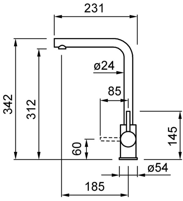 Înălțime pipă312 mm