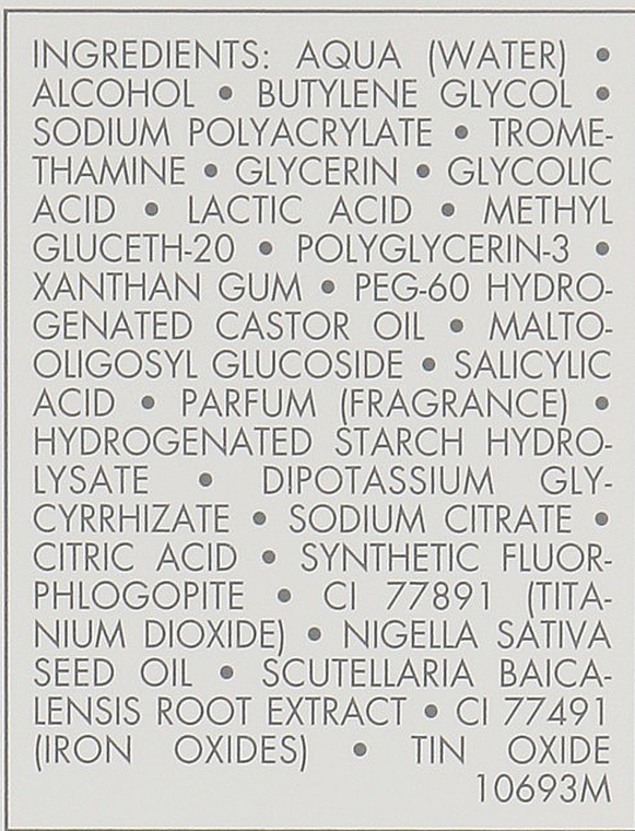 Laptele delicat și hrănitor îndepărtează eficient pielea de celulele moarte, impuritățile, excesul de sebum. Acest efect este posibil datorită acțiunii complementare a trei acizi organici: citric, glicolic, lactic. Uleiul ușor și hrănitor de flori de nigella elimină inflamația, blochează efectele dăunătoare ale radicalilor liberi, încetinește procesul de îmbătrânire.