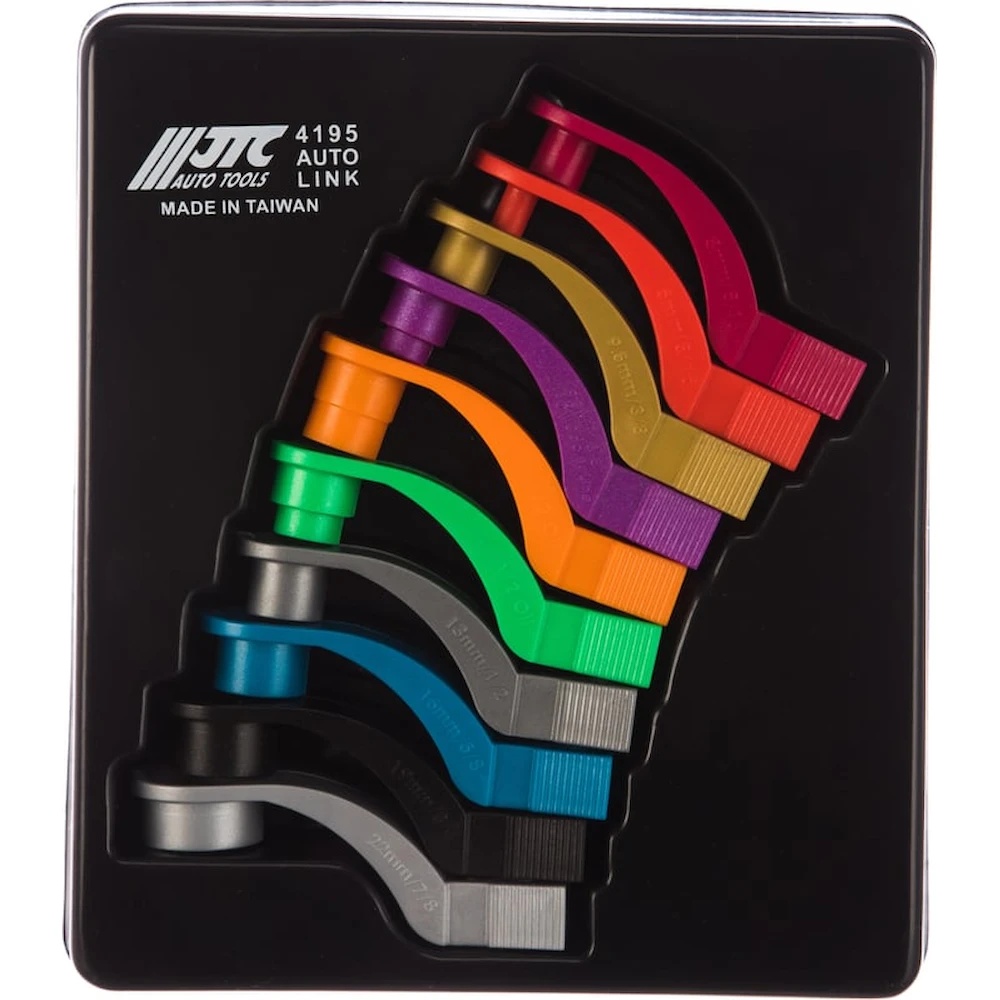 Setul de extractoare pentru furtunurile de aer condiționat AUDI A3, A4, A5, Q5 JTC 4195 permite deconectarea cu grijă a elementelor sistemului de răcire sau de alimentare cu combustibil. Forma specială a modelelor garantează confortul utilizării în locuri greu accesibile.