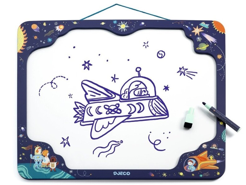 O placă încântătoare cu tematică spațială pe care o puteți folosi pentru a scrie, a agăța fotografii, a atașa piese magnetice și a vă decora camera.