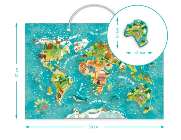 Intra in set1 tabla magnetica cu harta lumii, 36 de magneți cu imagini cu animale, șnur pentru montare pe perete