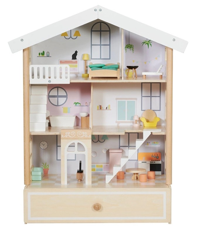 Casa de păpuși include camere precum living, bucătărie, dormitor, baie și un balcon pentru grătar! Mobilierul te face să te simți ca acasă. La sfârșitul jocului poți colecta și organiza toate piesele de mobilier în sertar.