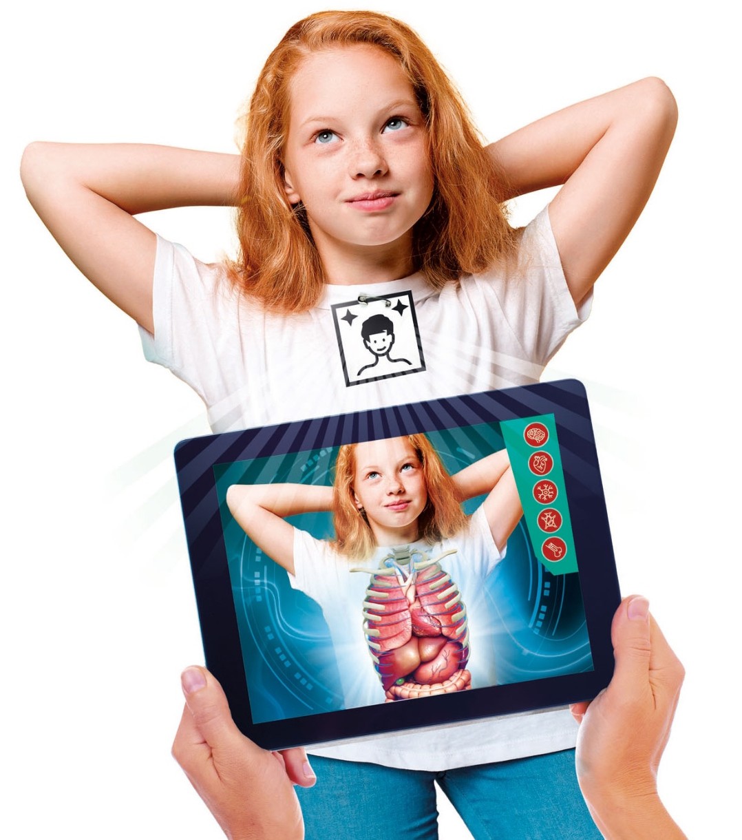 O aplicație interactivă care folosește realitatea augmentată pentru a-i învăța pe copii despre principalele aparate ale corpului uman și le permite să afle o mulțime de lucruri interesante și informații științifice.
