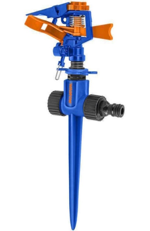 Aspersorul Wadfow WNE3E34 este un pulverizator pulsator din plastic cu două tije, destinat udării uniforme a grădinilor, gazonului și flowerbed-urilor. Este echipat cu reglarea unghiului de pulverizare între 20° și 360° și raza de udare ajustabilă printr-un cadran de pe partea superioară a dispozitivului, permițând acoperirea precisă a unei suprafețe de până la 453 m². Construcția din ABS, POM și PP oferă rezistență și durabilitate, iar cele două ieșiri permit conectarea mai multor aspersoare simultan, sporind eficiența irigării.
