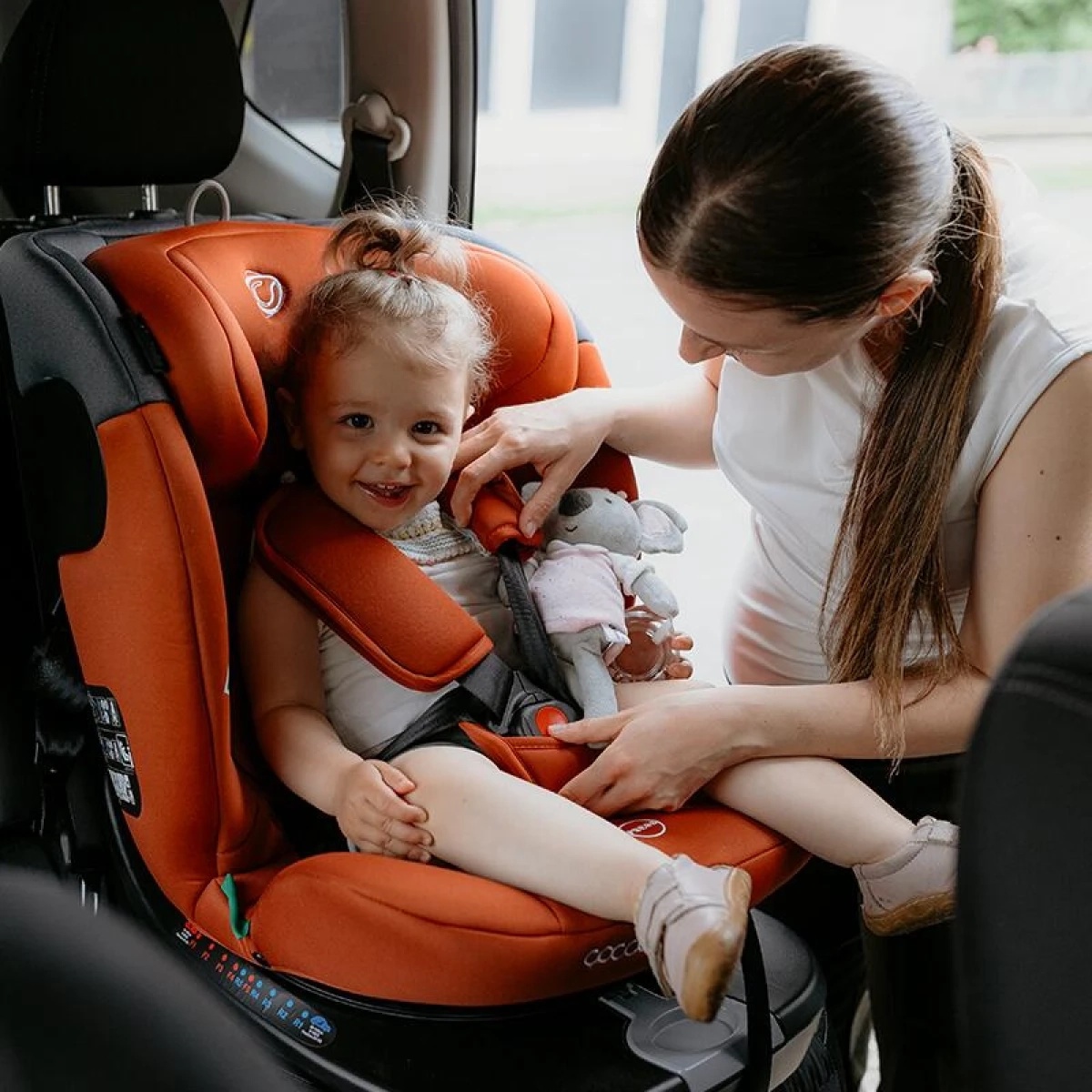 Atunci cand este fixat in sistemul isofix scaunul se roteste 360, pentru a facilita asezarea si scoaterea bebelusului din scaun. Scaunul auto Coccolle Atira are o pozitie confortabila de somn cu spatele la sensul de mers si 4 pozitii de inclinare cu fata la sensul de mers. Tetiera scaunului auto este reglabila in multiple pozitii.