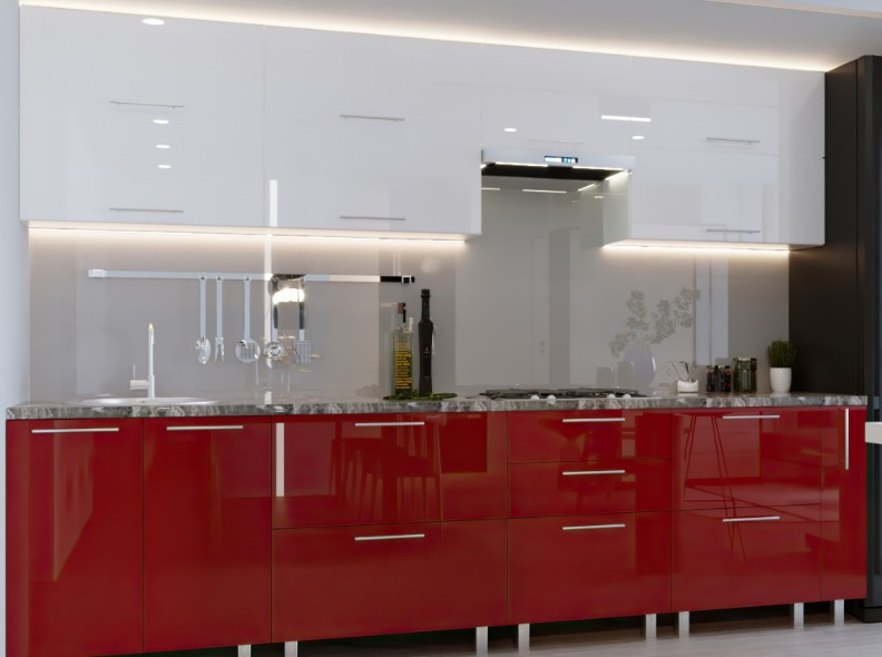 Bucătărie Bafimob Quadro (High Gloss) 3.0m +ball closer White/Red