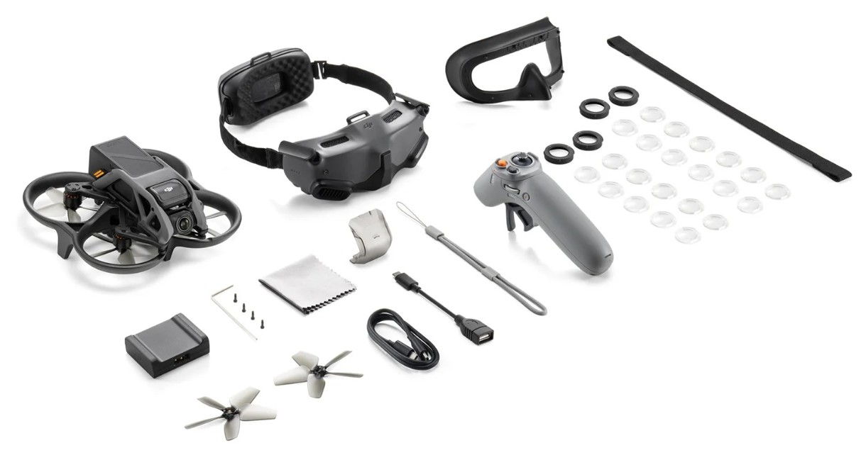 EchipamentOchelari DJI Integra, Telecomanda DJI RC Motion 2, Baterie inteligentă DJI Avata, elice (pereche) pentru DJI Avata – 3 buc, Adaptor de alimentare pentru DJI Avata, Protecție gimbal DJI Avata, Cablu de tip C la tip C, șurubelniță – 3 buc, set de șuruburi (M2 * 7), Rama ochelari DJI Goggles Integra – 2 buc, Lentile corective pentru DJI Goggles Integra (pereche) – 11 buc, Bandă pentru ochelari DJI Integra, pânză pentru lentile, curea