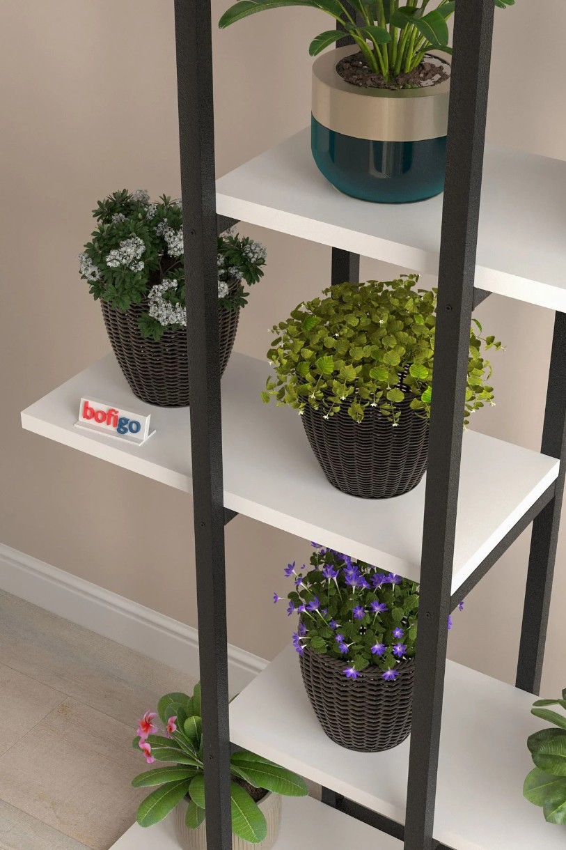 Suportul pentru flori Bofigo 13-31-01combină un cadru metalic solid, acoperit cu vopsea pulbere, cu PAL de înaltă calitate de 18 mm, oferind stabilitate ridicată, durabilitate și rezistență la uzură. Mai multe niveluri permit amplasarea plantelor de diferite înălțimi, creând o compoziție ordonată și un colț verde compact. Structura metalică rezistentă suportă fără probleme greutatea ghivecelor și menține stabilitatea raftului. Datorită dimensiunilor sale compacte, suportul se integrează cu ușurință pe balcon, în living, hol sau orice alt spațiu interior. O soluție practică pentru organizarea plantelor într-un mod estetic și eficient.