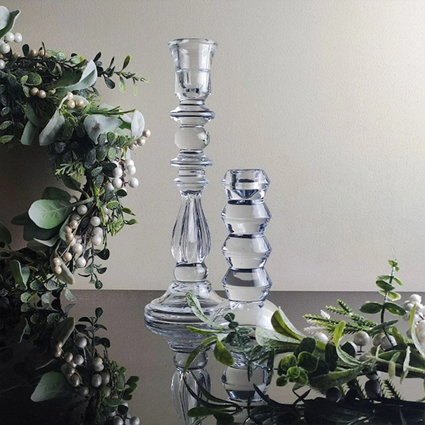 Sfeșnicul înalt CLASSIC 30 cm de la Casa Masa este realizat din sticlă transparentă pură. Forma, stilizată după clasicul arhaic, îl face un accent decorativ vizibil în interior.