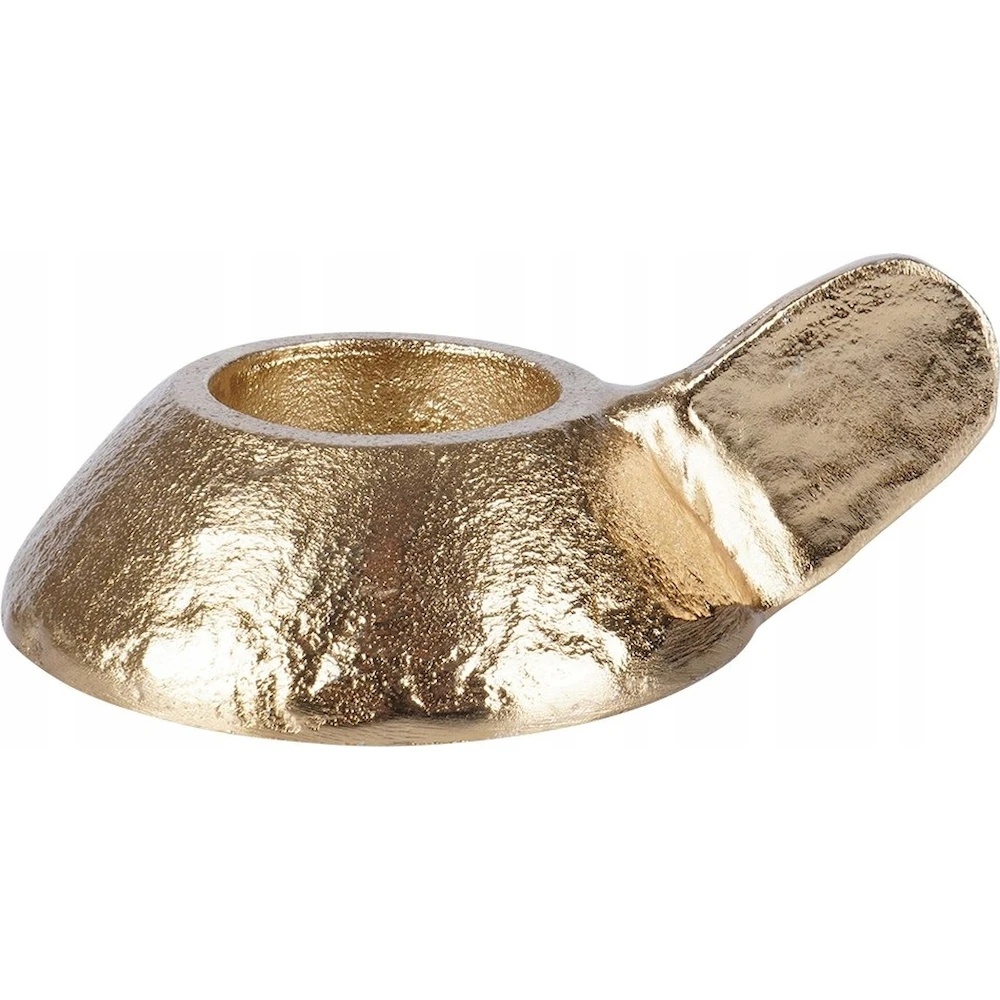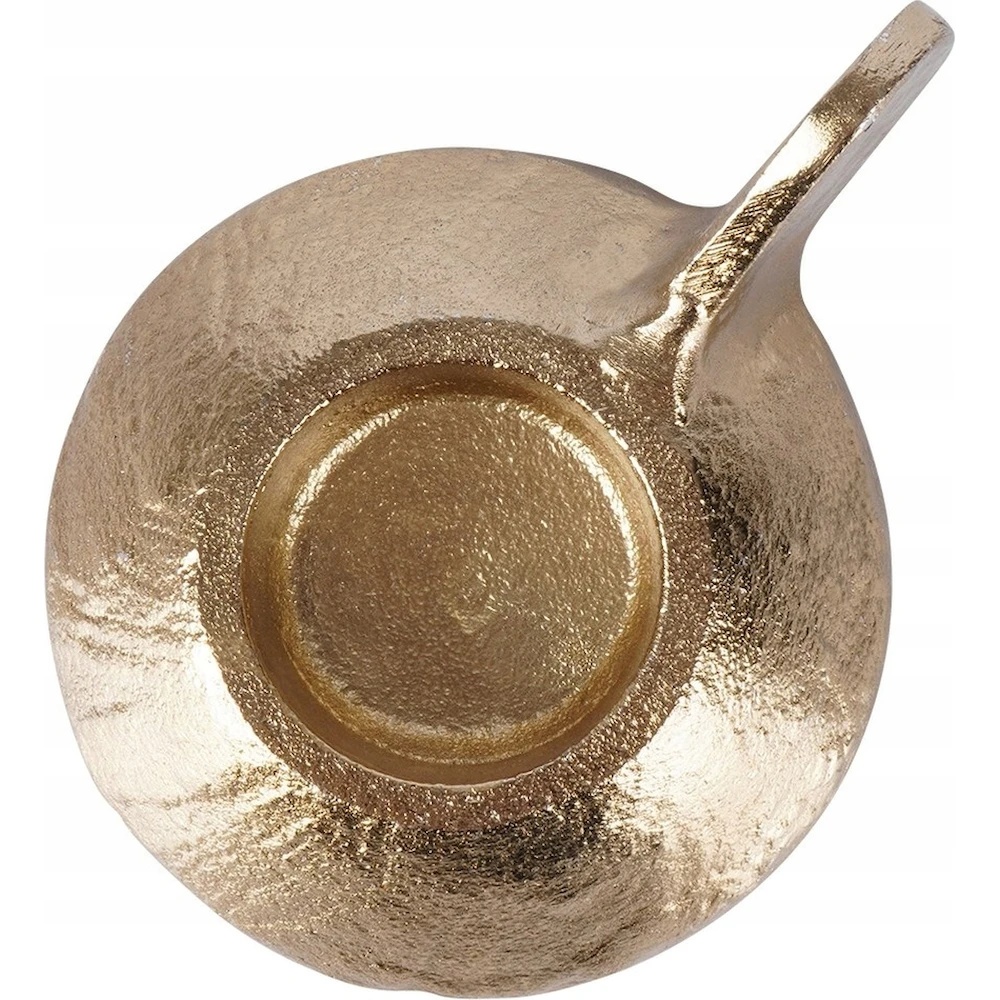 Eleganța întâlnește funcționalitatea în acest suport pentru lumânare tip tealight sau lumânare tradițională cu diametrul maxim de 4 cm. Realizat din aluminiu de înaltă calitate, vopsit în culoare aurie, suportul dispune de bază rotundă care asigură stabilitate și de un mâner practic pentru transport ușor.
