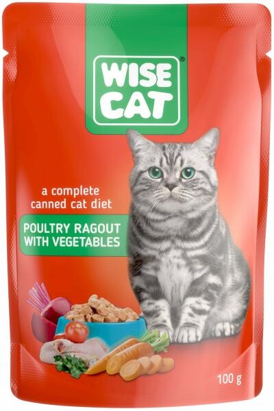Hrană umedă pentru pisici Wise Cat Adult Cat Poultry Ragout & Vegetables 24x100g