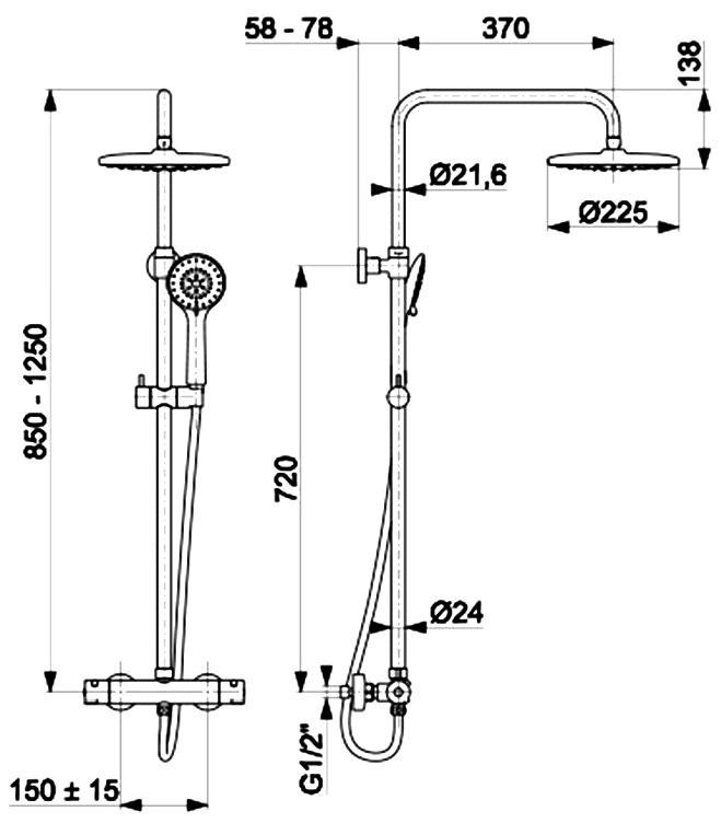 Diametru disc de dus225 mm