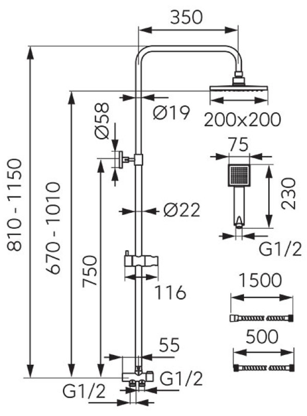 Dimensiunile dus stationar200х200 mm