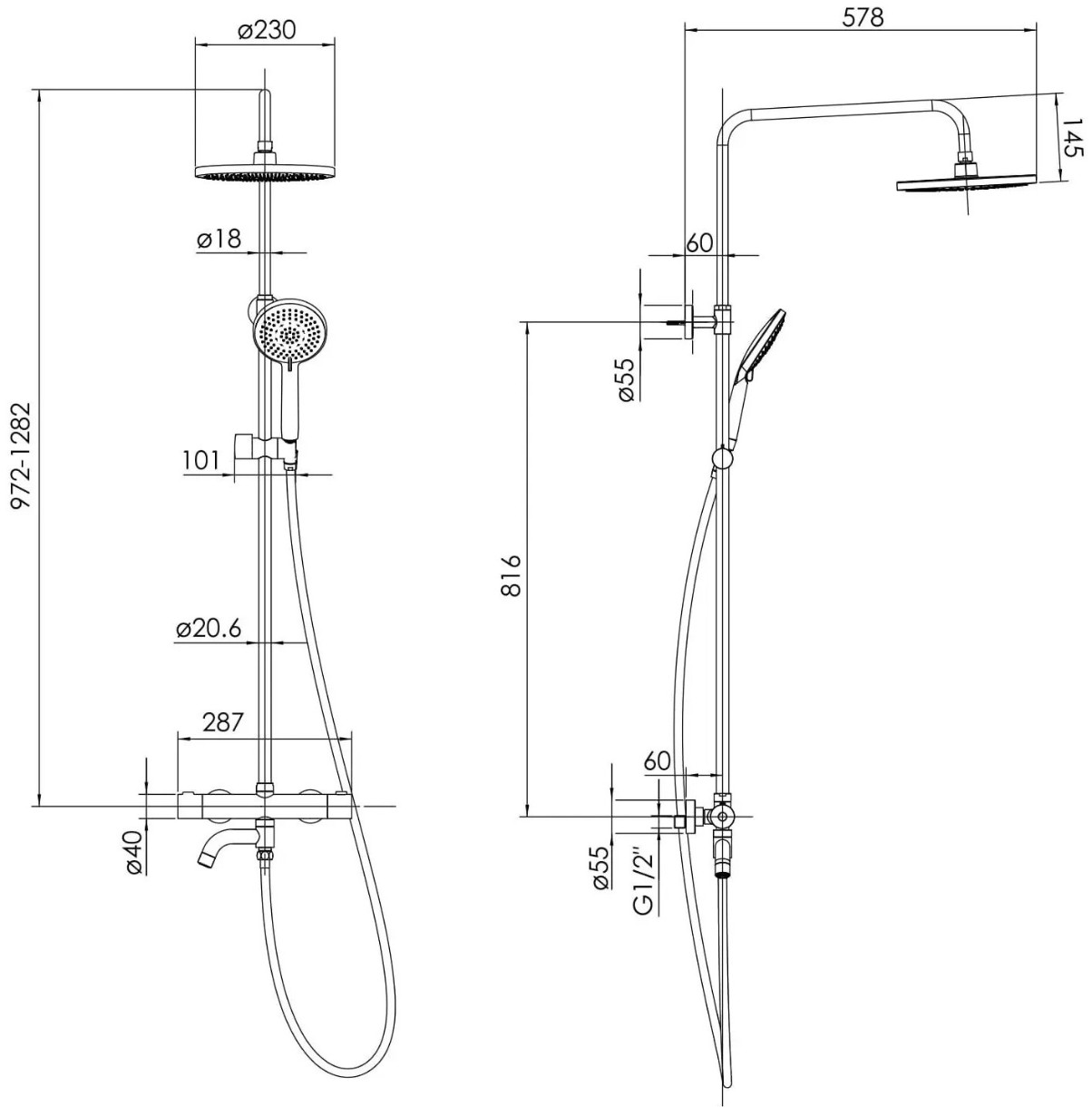 Inălțime1282 mm