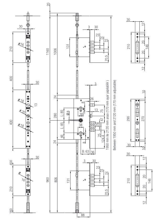 Altelecomplet cu deviatori, tampoane blindate, omolog, elemente de fixare și tije verticale