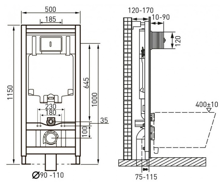 Rezervor WC îngropat cu cadru VOLLE Master 4in1 (141919)