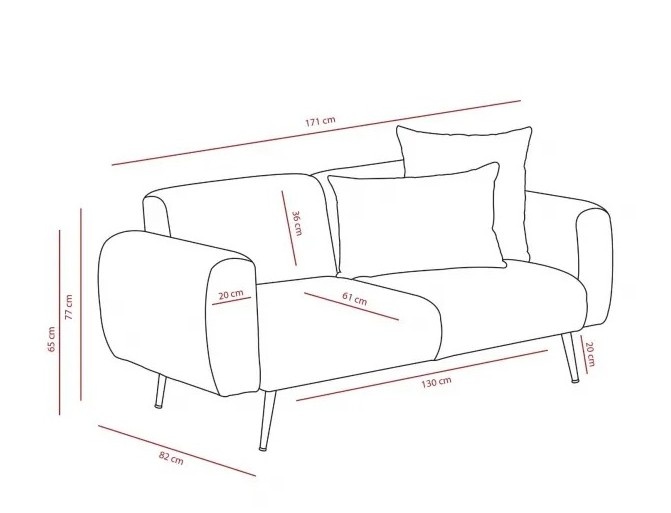 Dimensiunea canapelei (l×L×Î)171x82x77 cm